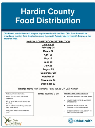 See the photo to the left for the Hardin County Food Distribution Dates for 2026!
