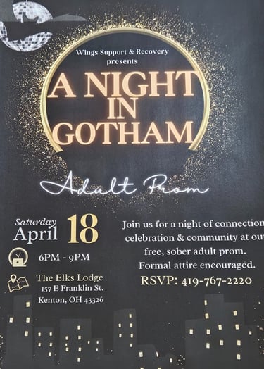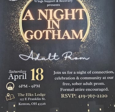 Join Wings Support and Recovery for their Adult Prom in Kenton on April 18th, 2026. RSVP to 419.767.2220